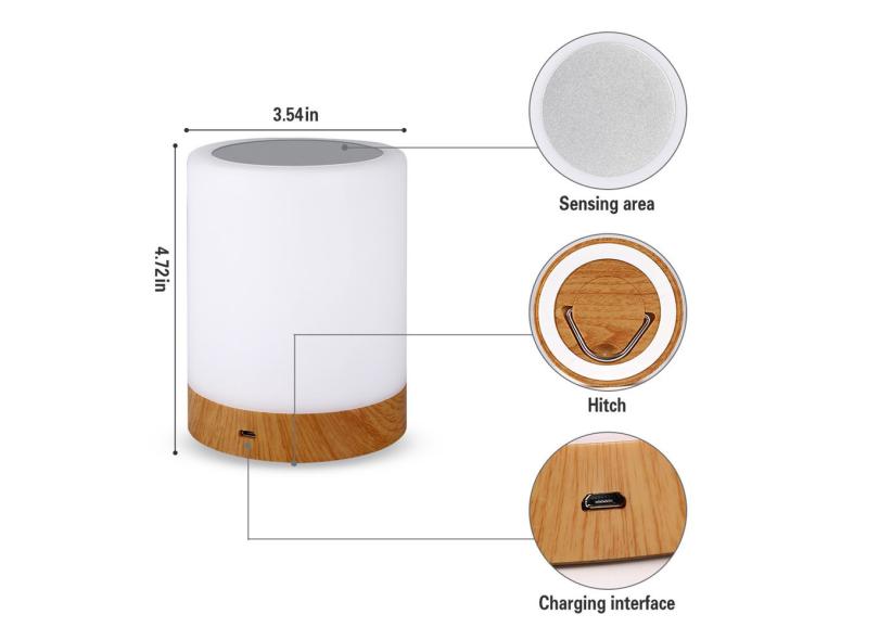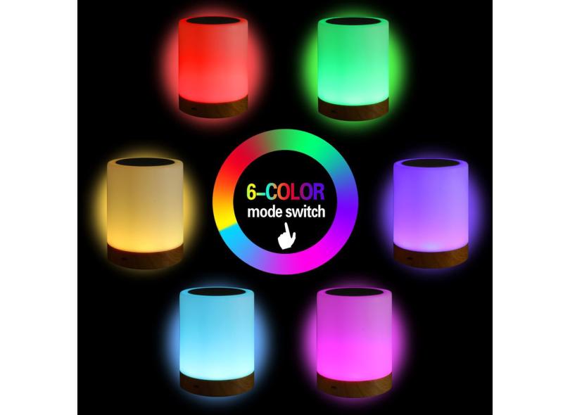 Abajur com luz de mesa para carregamento em grão de madeira criativa led colorido