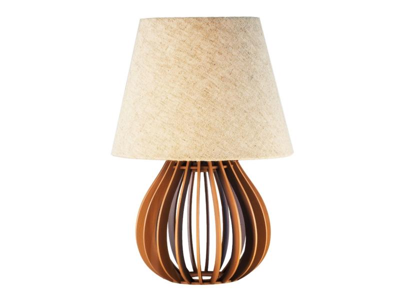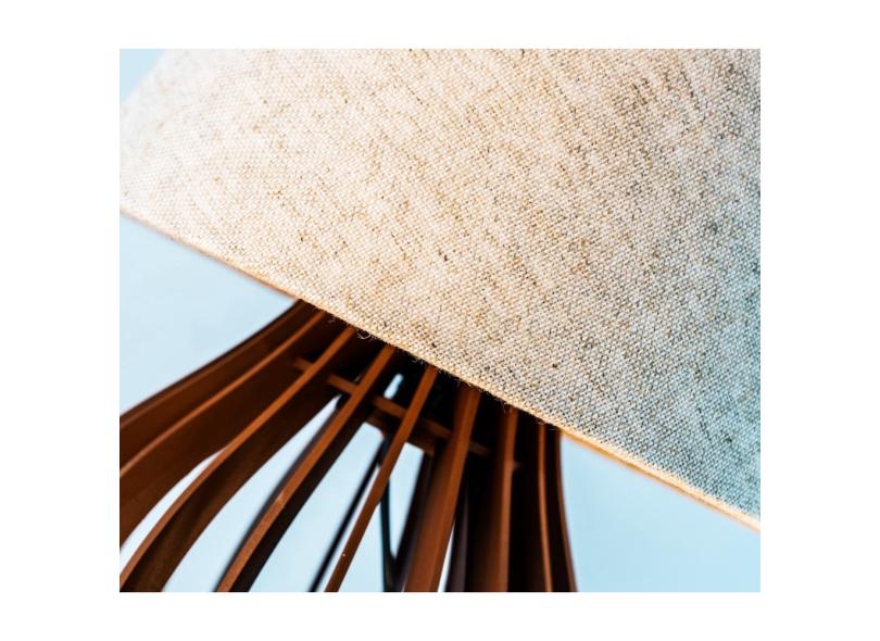 Abajur de Mesa Sala Quarto Gota De Madeira Caramelo Cúpula De Tecido Bege 34cm - Bivolt