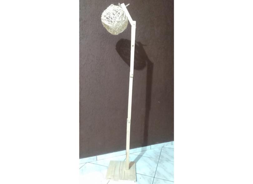 Luminária Abajur De Chão Madeira Retrô Vintage Cúpula Sisal