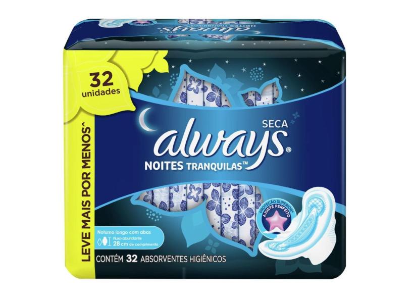 Absorvente Always Noites Tranquilas Seca Com Abas 28cm - 32 unidades