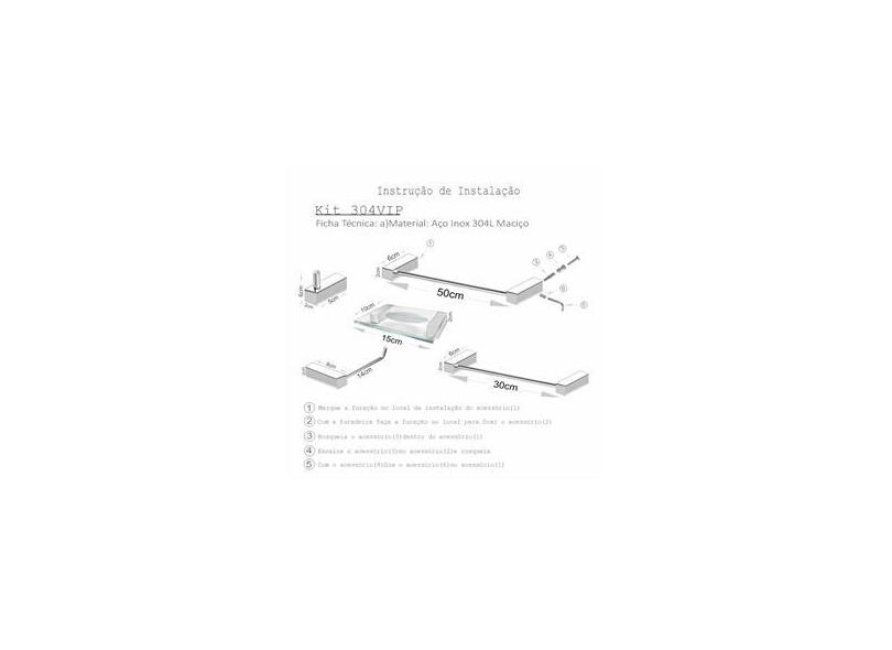 Kit Acessórios Banheiro em Aço Inox 5 Pçs 304VIP Alto Padrão