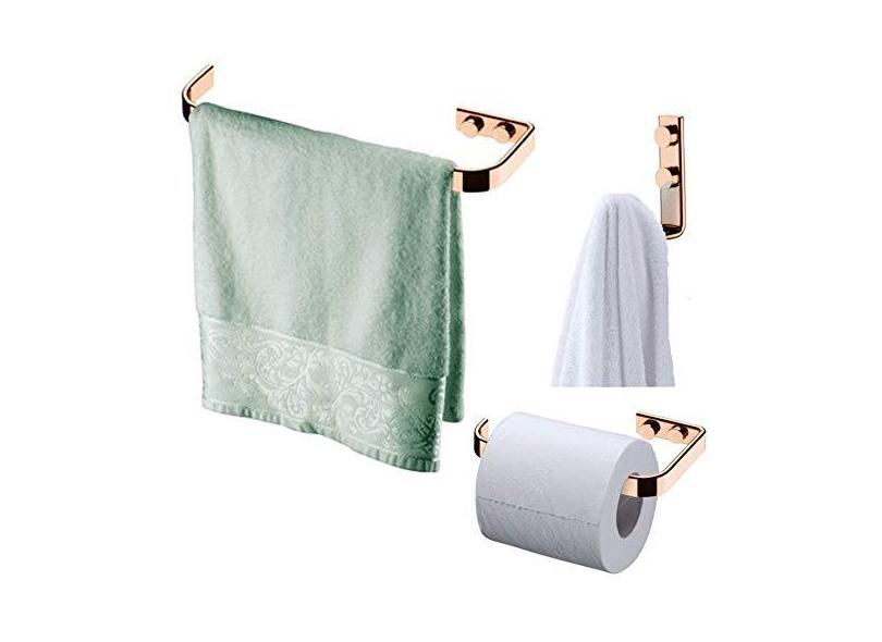 Kit Banheiro Rosé Gold Porta toalha 22cm + Gancho + Suporte Papel Higiênico - Future