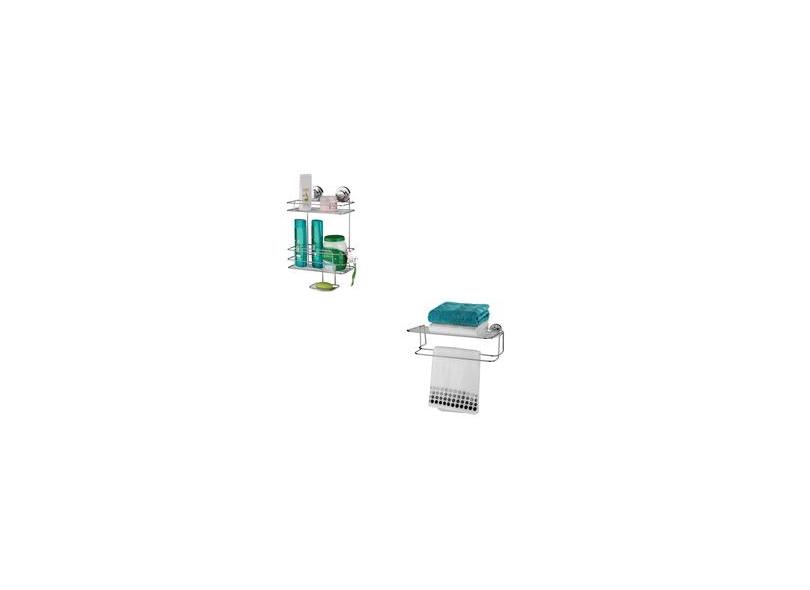 Kit Porta Shampoo e Sabonete + Toalheiro Prateleira Ventosa