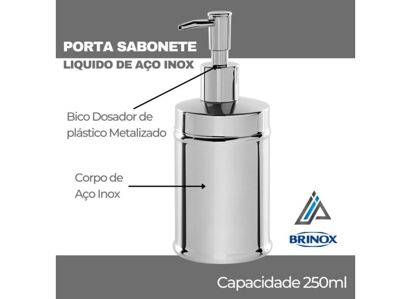 Porta Sabonete Liquido de Aço Inox Capacidade 250ml - Brinox