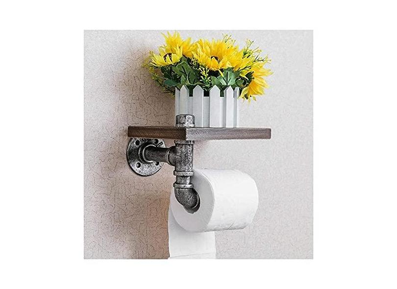 Suporte de papel higiênico de rack Distribuidor de rolo de tecido de metal com prateleira de madeira Suporte de torre de papel Suporte de parede para barras de toalha de banheiro
