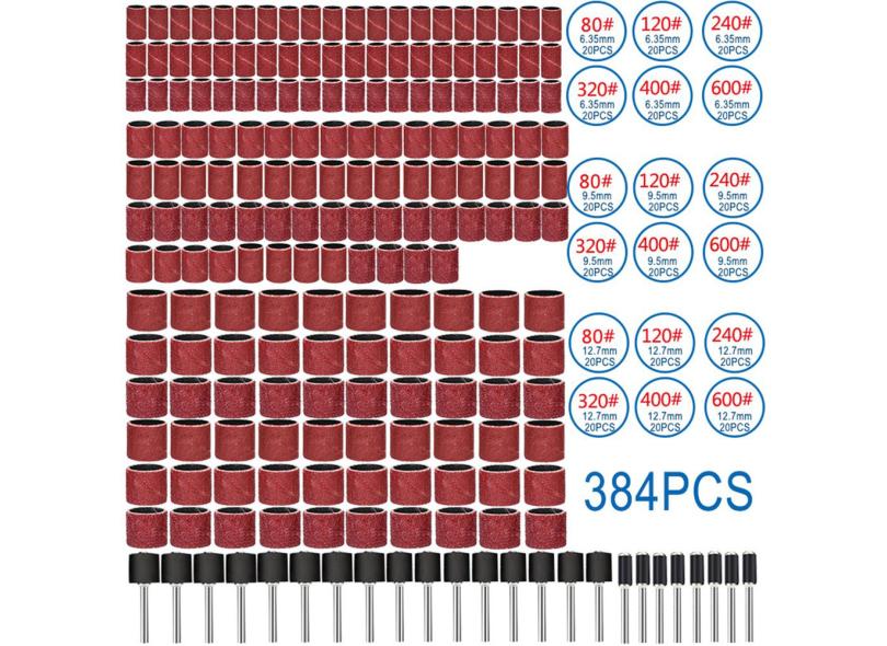 Conjunto de lixadeira de tambor 384 peças para ferramenta rotativa Dremel para acabamento e trabalhos de bricolagem