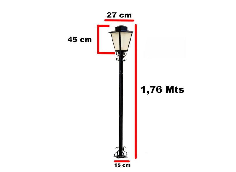 Luminaria Poste Jardim Colonial Quadrado P3 Preto
