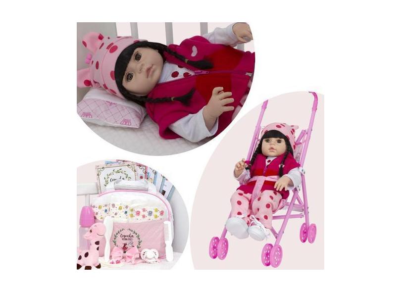 Bebe Reborn Menina Girafa Morena Com Carrinho Para Boneca - Cegonha Re