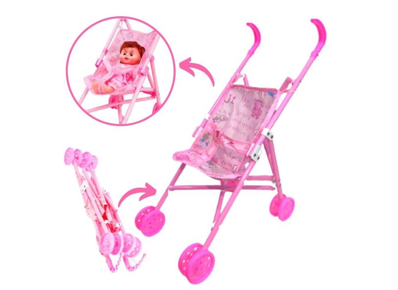 Carrinho Boneca Criança Rosa Grande Menina Simples