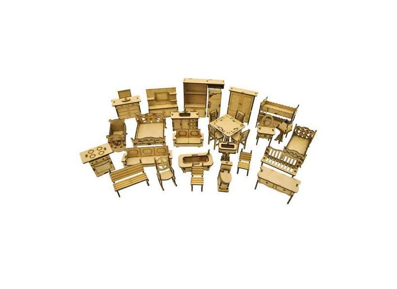 Jogo Com 30 Móveis Casa Boneca Polly 3D Miniatura Mdf Cru - Atacadao D