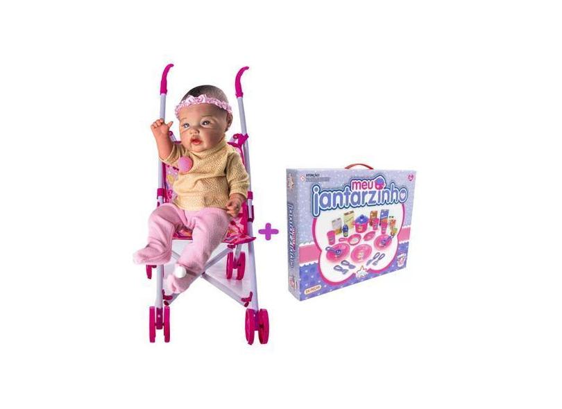 Kit Bebê Realista C/ Carrinho De Boneca Rosa + Jogo Surpresa - Dm Toys