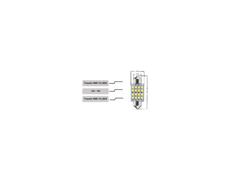 100 x Lâmpadas LED Torpedo 39mm 16 Leds 12V Atacado