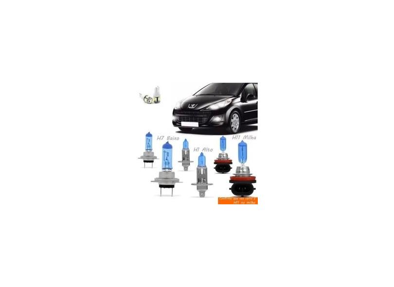 Kit Lâmpadas Super Farol Alto H1 Baixo H7 Milha H11 Peugeot 207 Anos 2006 A 2009