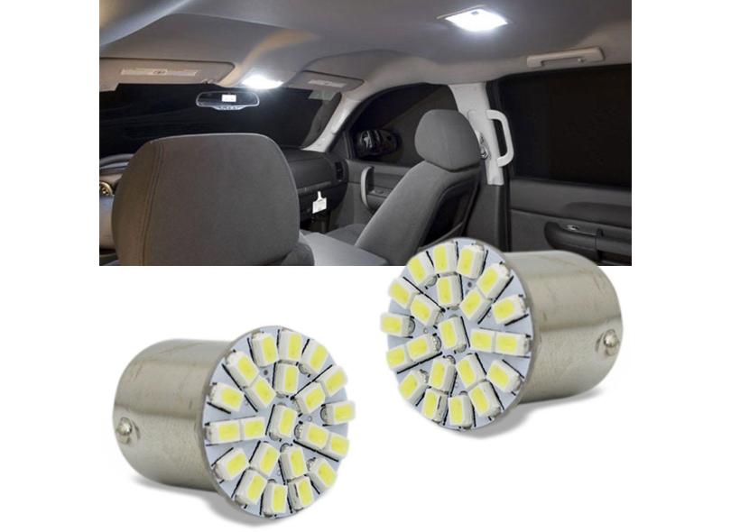 Par Lâmpada 22LEDs 1157 2 Polos Trava Reta 6000K Placa Teto Porta-Mala Porta-Luva Lanterna Farol