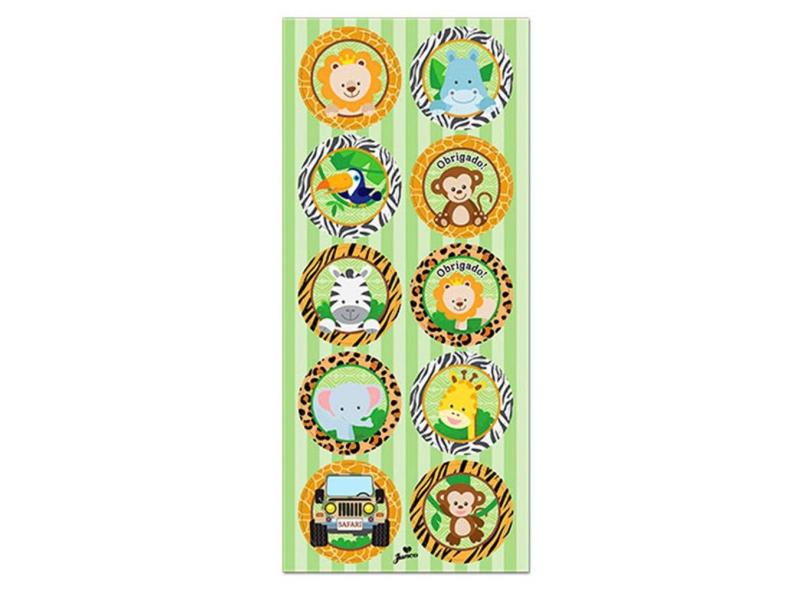 Lembrancinha Adesivos Redondo Bem-Vindo À Selva 03 Cartelas Junco