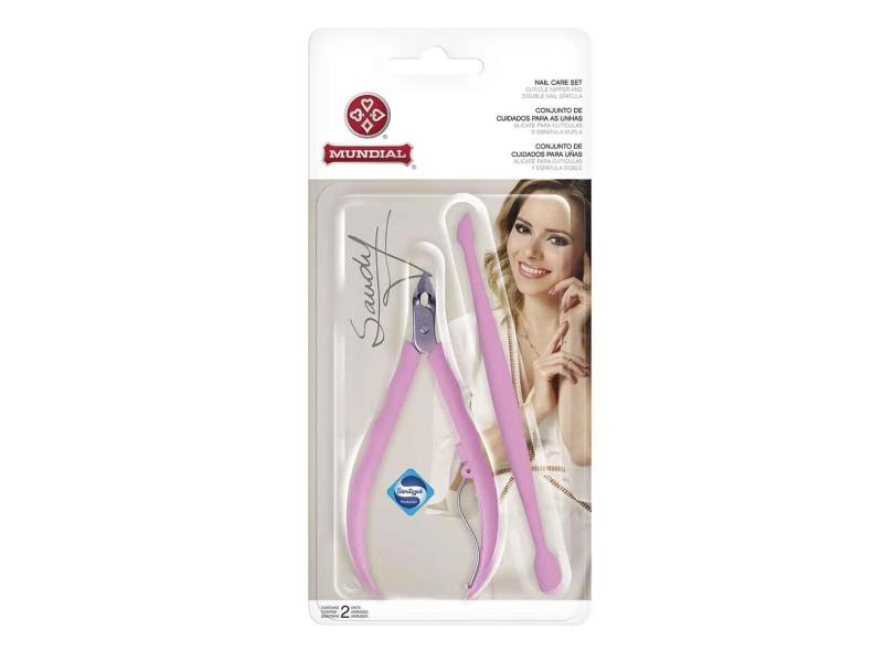 Mundial Kit Alicate De Cuticula + Espatula Dupla Sandy Rosa 756-S 1 Unidade