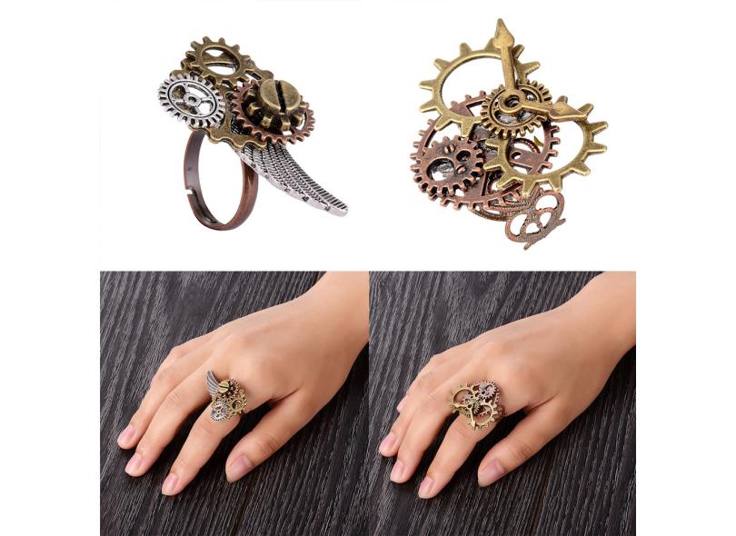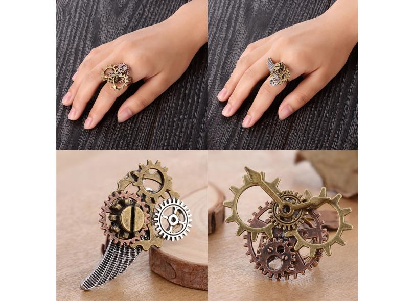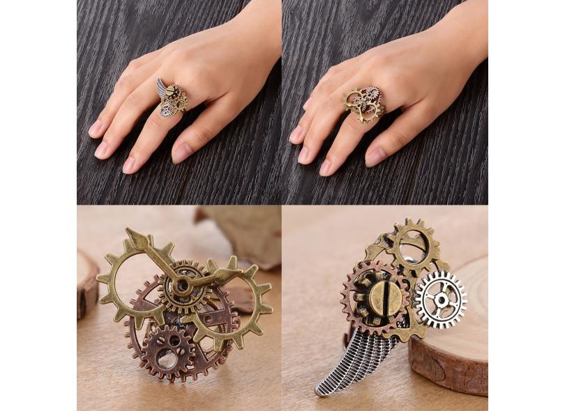2pcs Relógio Engrenagens Anel Punk Moda Masculina Motociclista Antigo Anel De Engrenagem Ajustável