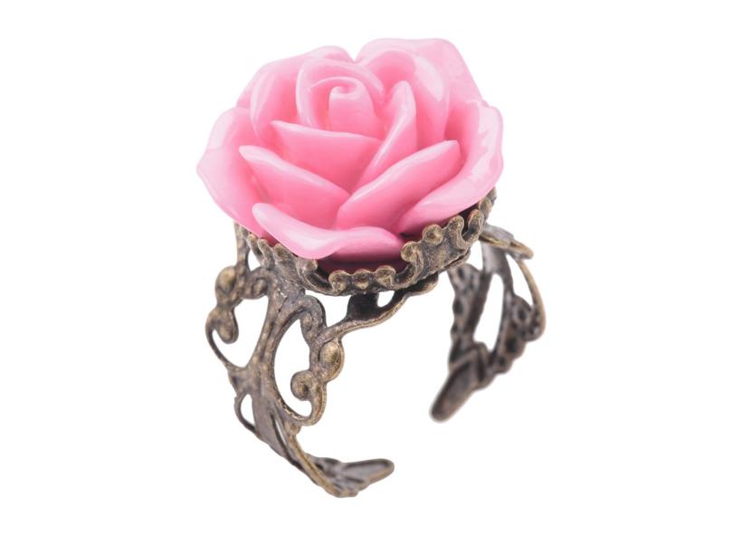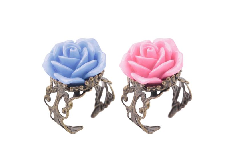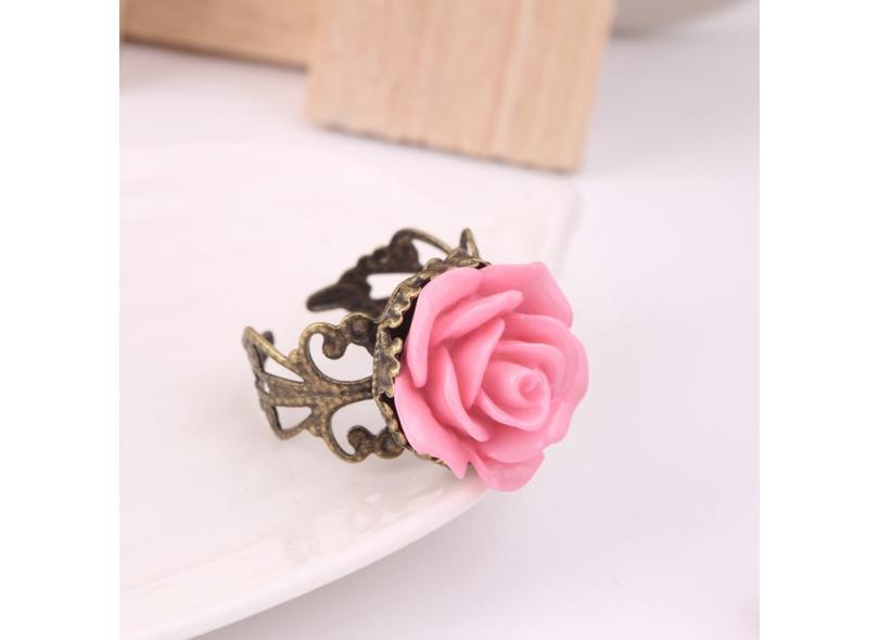 Anéis em forma de flor rosa gótica em liga de joias vintage de 20 mm para mulheres