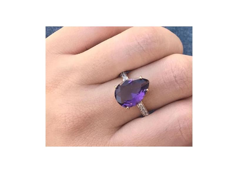 Anel aliança cravejada pedra gota Ametista folheada a ouro - Shelook