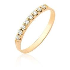 Anel Barato Meia Aliança Ouro Puro 10k Pedras Brancas - Maehler Joias