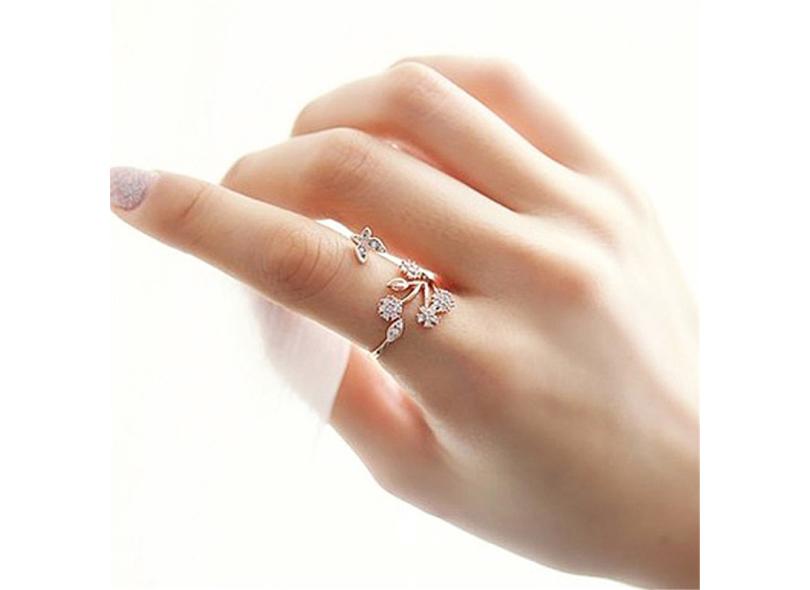 Anel de diamante de flor de folha de borboleta, mais recente anel de tendência feminina
