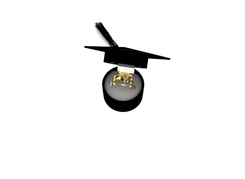 Anel de Formatura Secretariado em Ouro 18k e Pedras Naturais