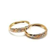 Anel de ouro 18k aparador faixas tricolor - Elegancy Joias