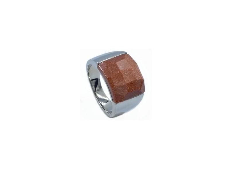 Anel em aço inoxidável modelo Pedra Sol retangular detalhe lapidado | Flecharts
