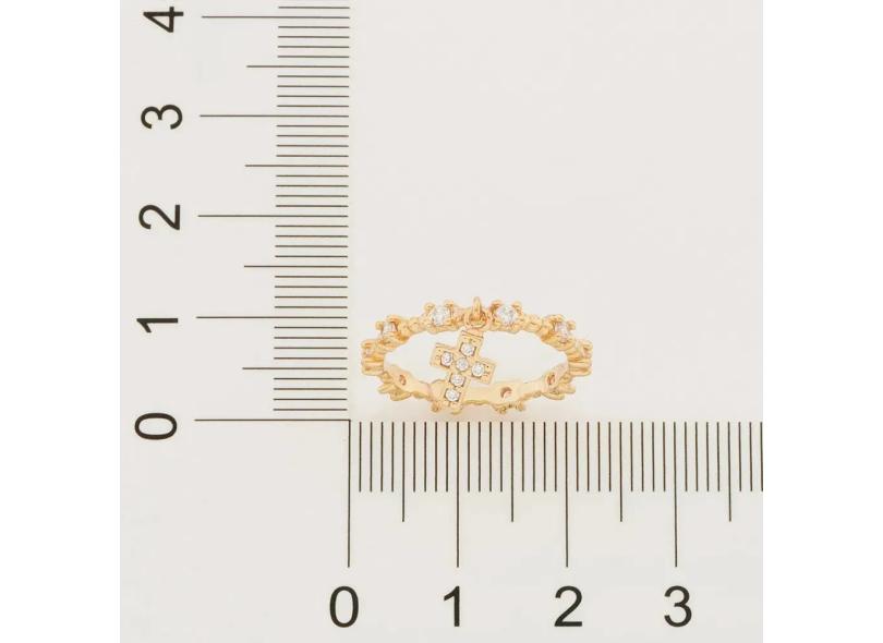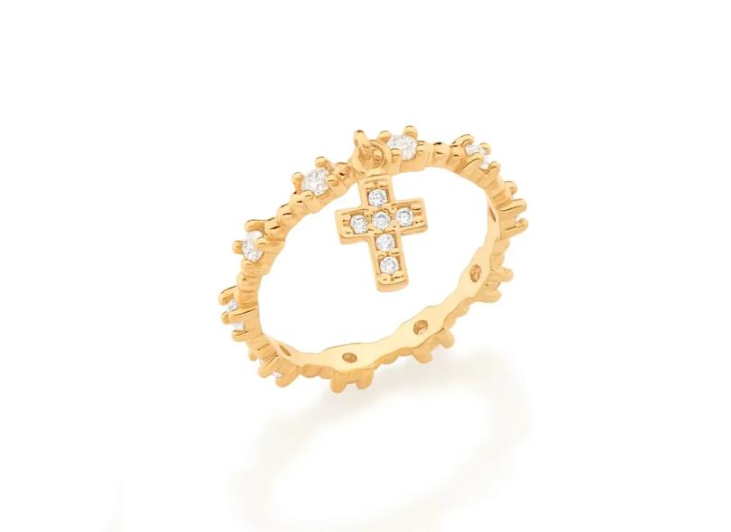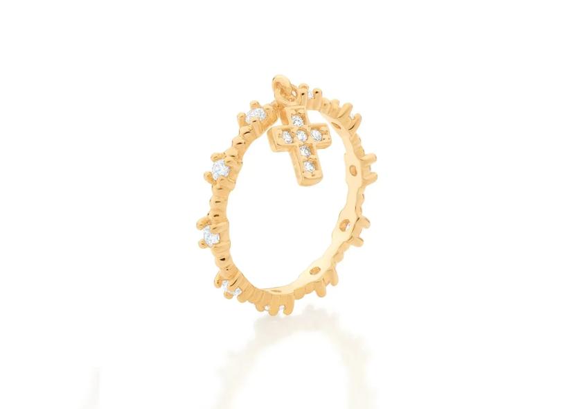 Anel Folheado A Ouro Formado Por Esferas Com Zirônias E Cruz Pendurada - 512853