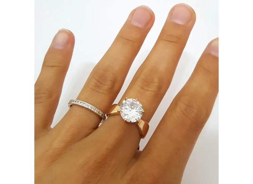 Anel Folheado A Ouro Solitário Composto Por Zircônia De 8,0mm - 511261
