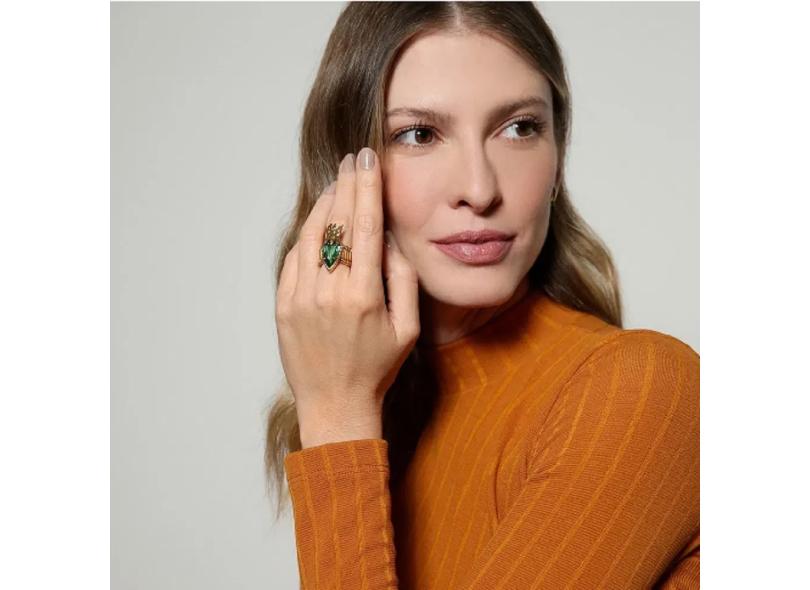 Anel Gota Cravada Ouro Velho Brotar