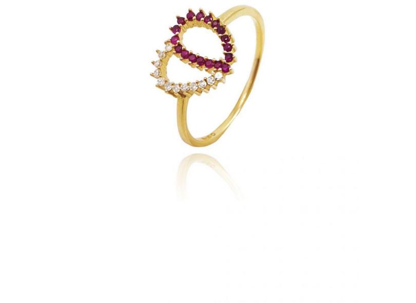 Anel Ouro Amarelo Coração Diamante Rubi 16