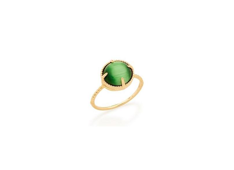 Anel Rommanel Banhado Ouro Solitário Pedra Olho De Gato Verde 512898