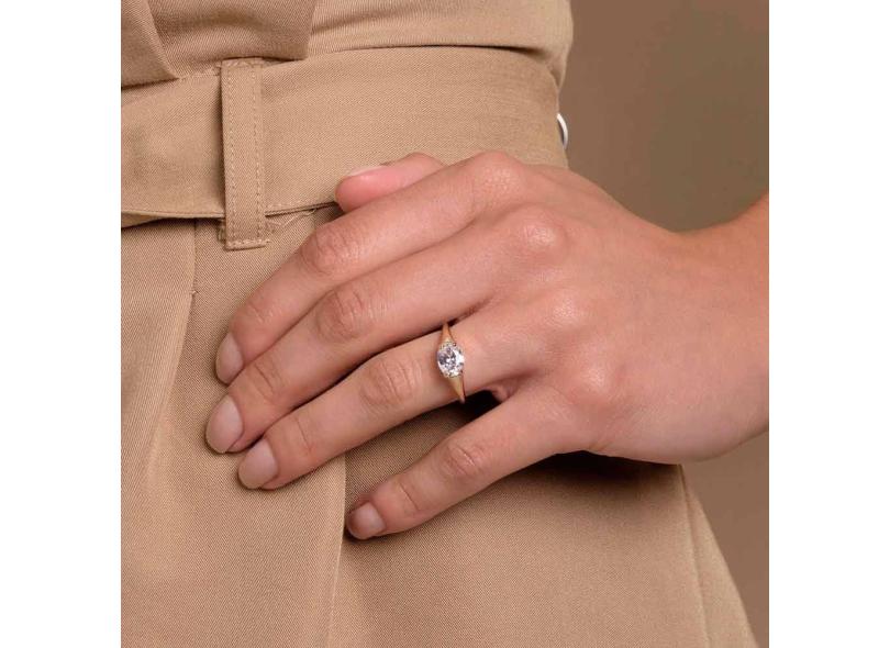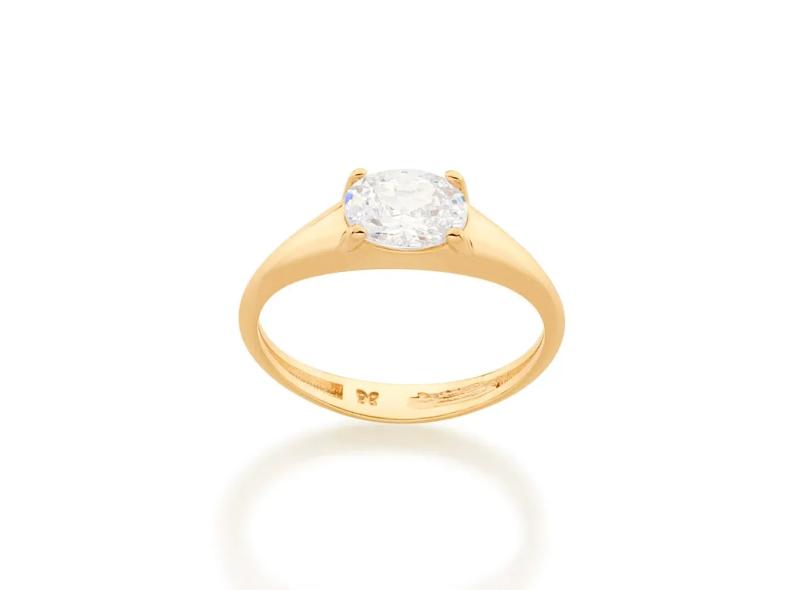Anel Rommanel Folheado Ouro Com Zirconia Oval 512952