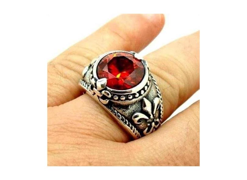 Anel Templário Rubi Flor De Lis 100% Prata 950 20173