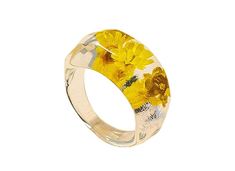 Fascigirl Anel de resina com flor seca transparente retrô vintage para meninas