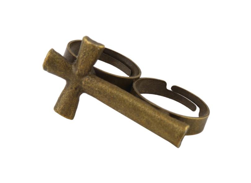 Moda ajustável Cruz de Metal Duplo dedo Anéis Jóias Anel especiais tr