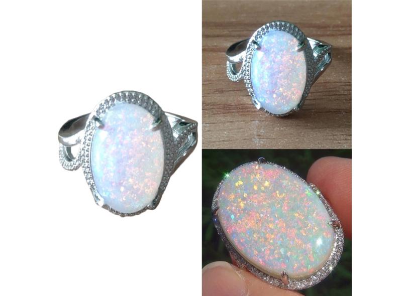Moda Feminina Super Brilhante Forma Oval Anel De Opala Artificial Dedo Jóias Presente