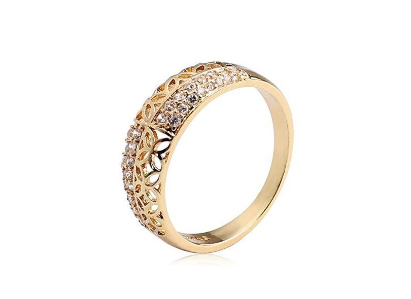 MuYiYi11 Anel retrô aberto, anel de zircônia cúbica vazada gravada em forma de flor