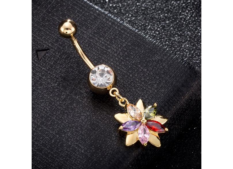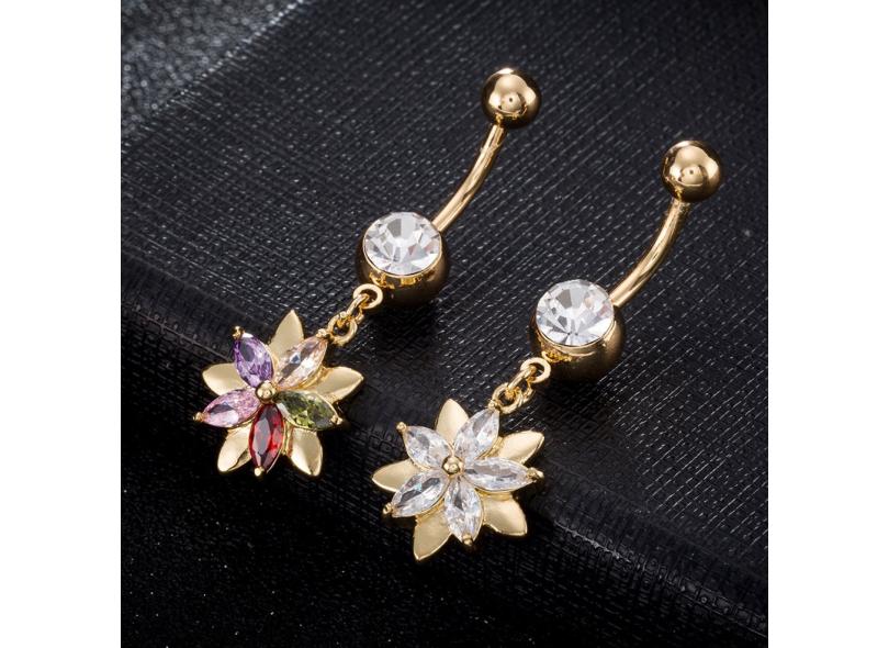 P0245-J-C Double-Layer Pétala Zircon Umbigo Anel Decoração do presente Preresent