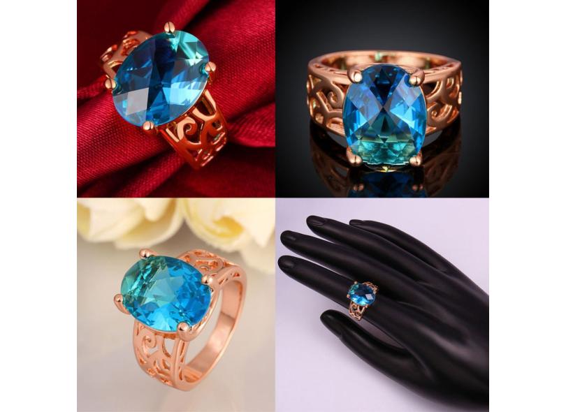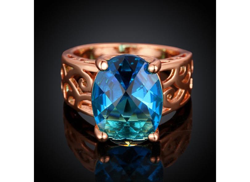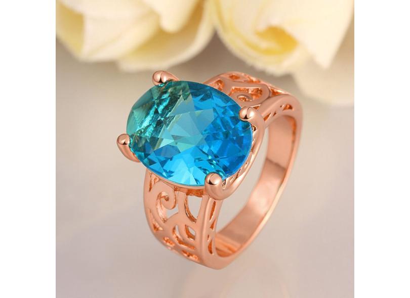 Presente em anel de zircão banhado a ouro rosa com joias antialérgicas de níquel oval
