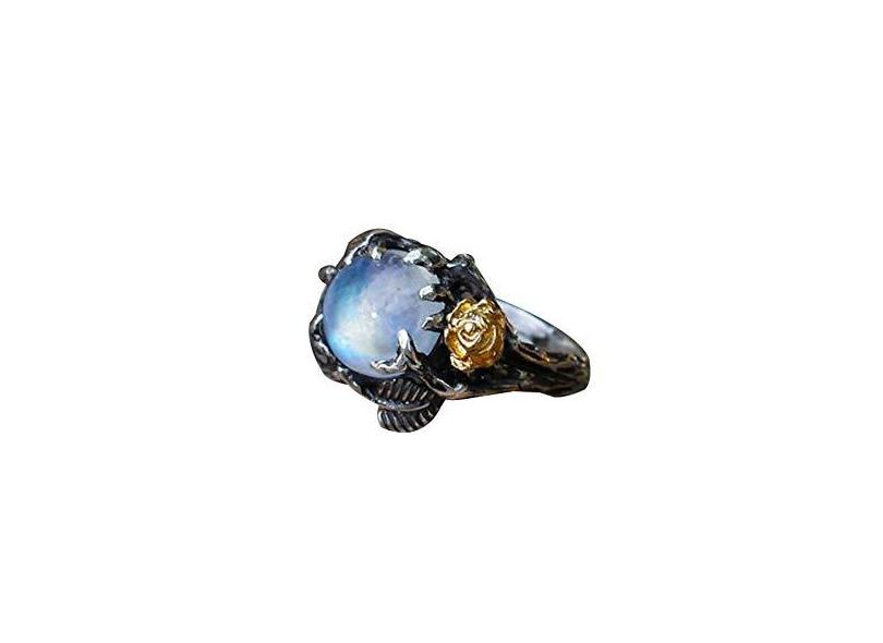 SoundsBeauty Anel feminino, pedra da lua falsa incrustada com folhas de s para presente tamanho dos EUA