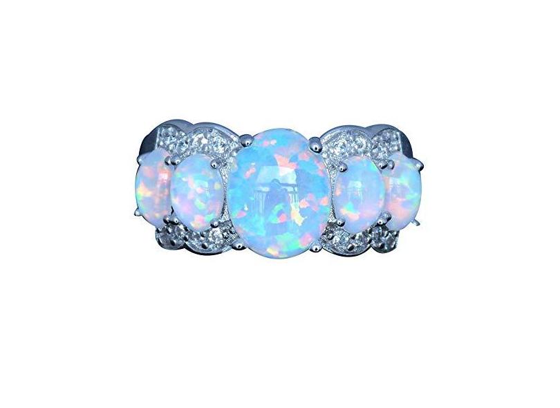 Super1798 Anel de Opala Sintética Feminino Oval Noivado Festa Casamento Joia Presente Branco