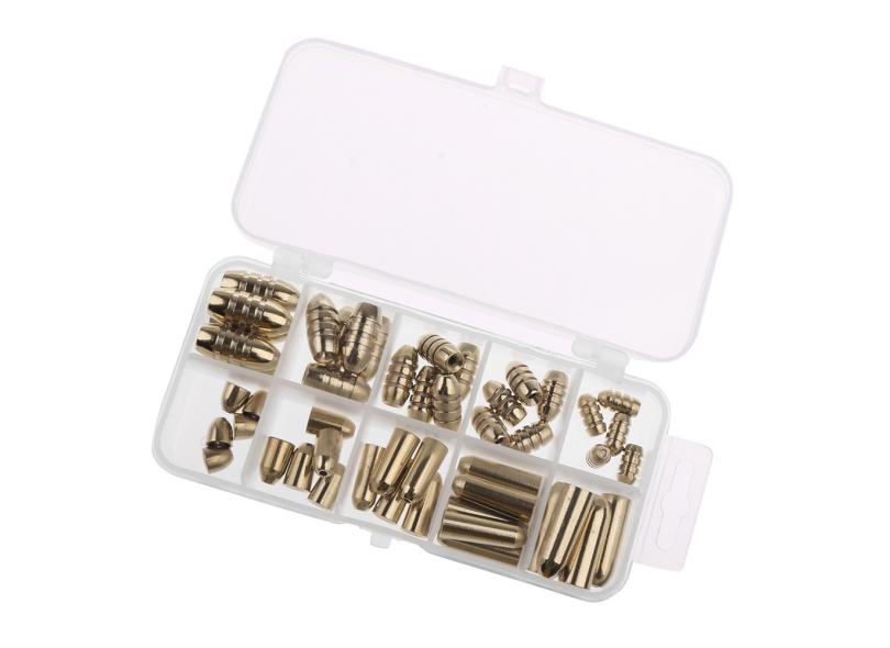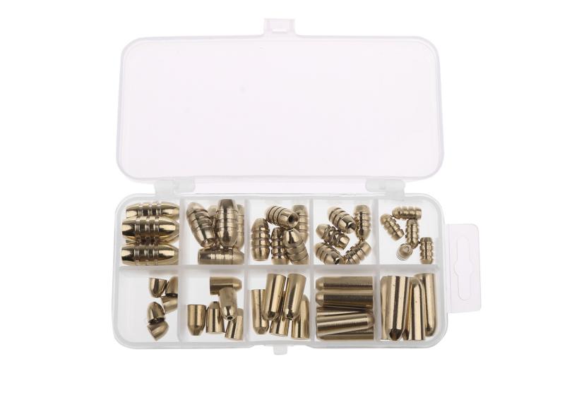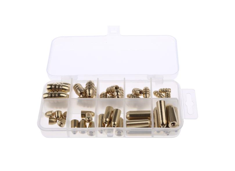 50 Peças Em Forma De Bala De Bronze Caixa De Equipamento De Pesca Conjunto De Iscas De Pesca Kit