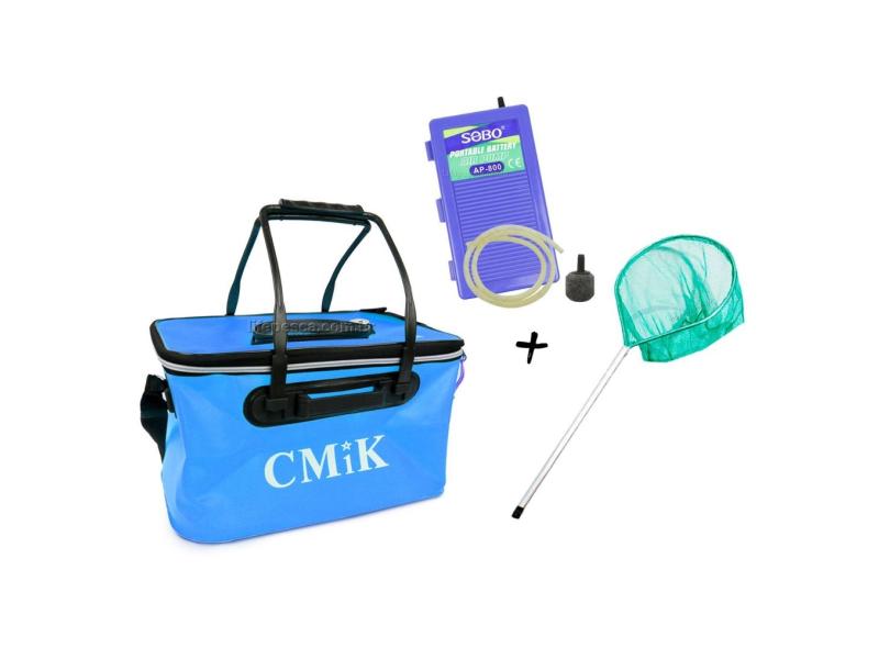 Kit Viveiro Flexível Para Isca Viva + Oxigenador Portátil Air Pump + Passaguá Mini