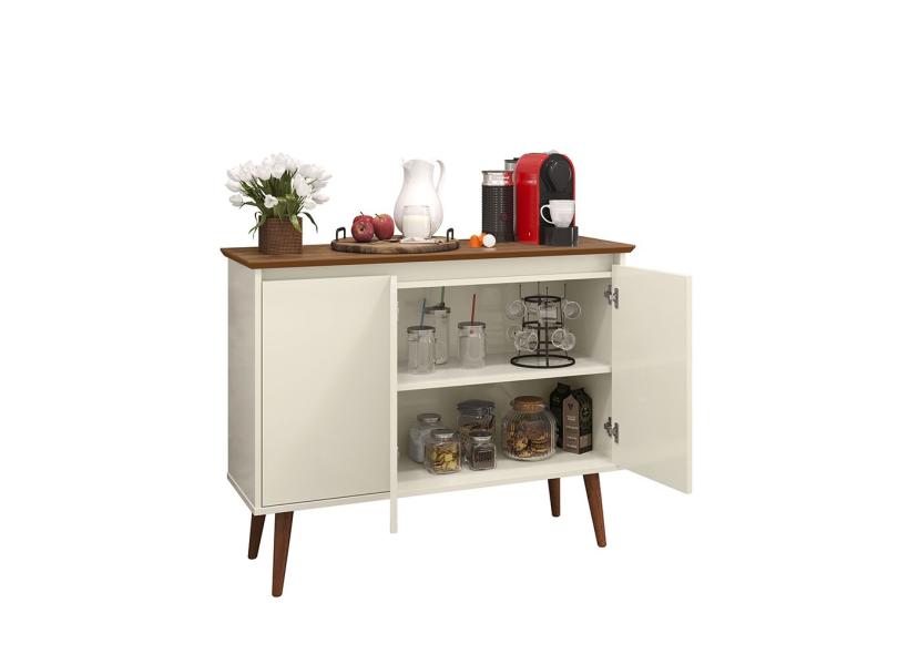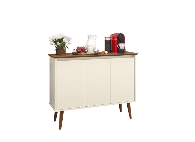 Aparador Buffet Retrô 3 Portas Luxo - Off White / Freijó - EJ Móveis