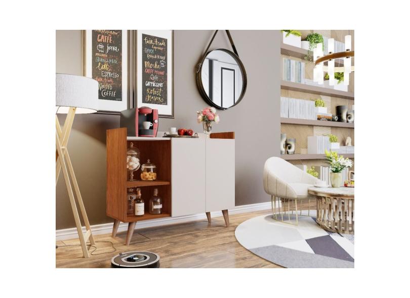 Aparador Galhardo 2 portas pés palito estilo retrô cor Freijo - Off white - Comprar Moveis Em Casa