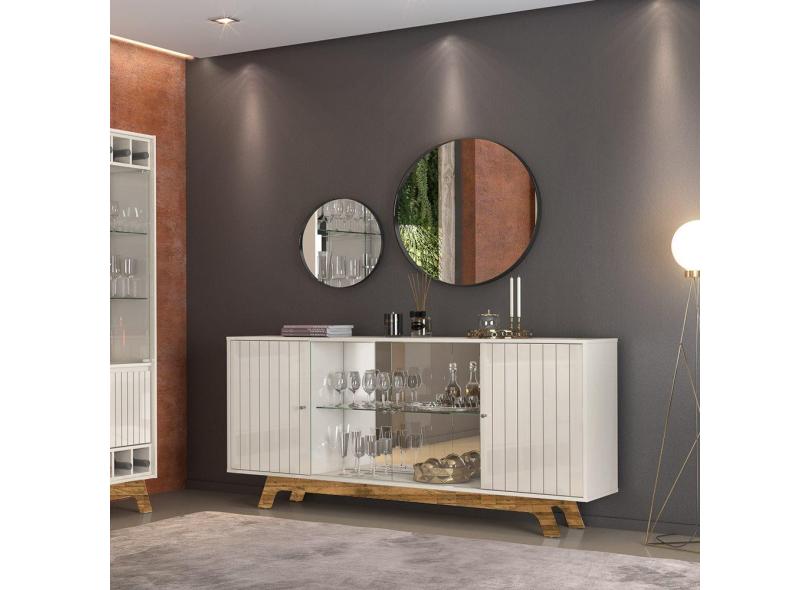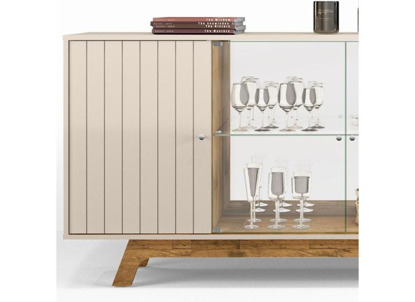 Balcão Buffet Aparador para Sala de Jantar Encanto Creme/Tronco Ripado - Dj Móveis