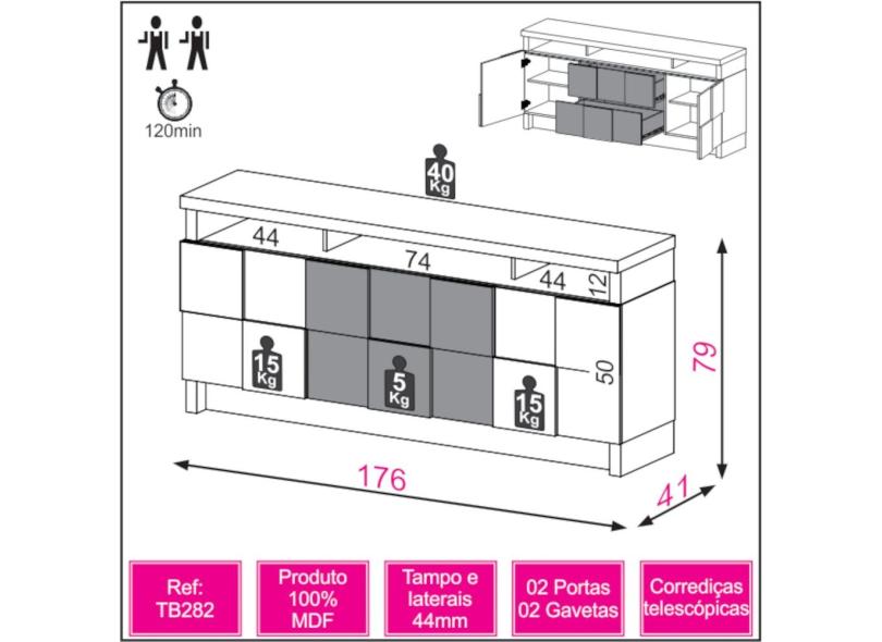 Balcão/Buffet Dalla Costa TB282 G2 Quadriculado 3D Grafite