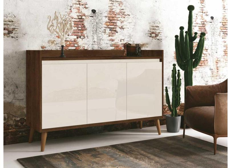 Buffet Aparador Retrô Clássico 3 Portas Malbec Com Off White - Moveisaqui